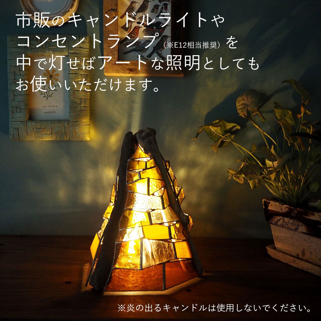 市販のLEDキャンドルライトやコンセントランプ(E12相当)などを組み合わせると